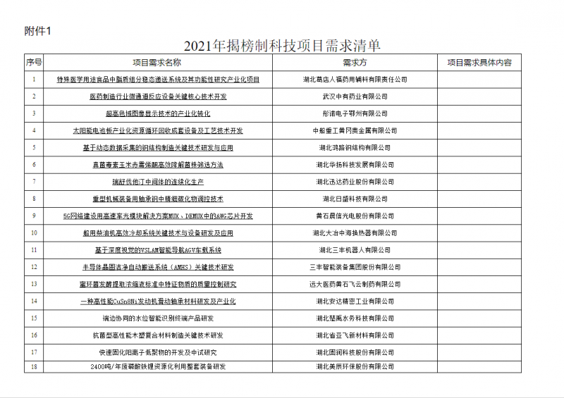 1.2021年揭榜制科技項(xiàng)目需求清單